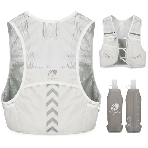 Outplea Gilet Hydratation avec 2pcs 500ml Bouteilles d’Eau Douce, Ultra Léger Gilet Trail Running Femme Homme, Réglable Sac Hydratation Running pour Randonnée Course à Pied Sport, Gris, L