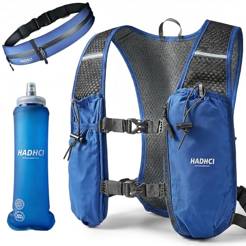 HADHCI Gilet Hydratation Running Homme et Femme, Gilet Trail Léger Anti-Rebond et Respirant avec Gourde Souple 500ml, Ceinture Ajustable pour Marathon, Trail et Randonnée