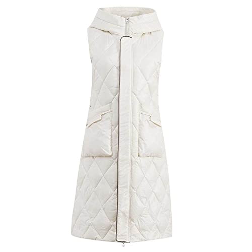 KHJH Gilet sans Manches Femme,Dames Gilet Longue Veste sans Manches Blanc À Capuche Steppweste Gilet Élégant Gilet Matelassé sans Manches Manteau Puffer Gilet Femmes Fille Hiver Chaud Gilet Bureau Ma