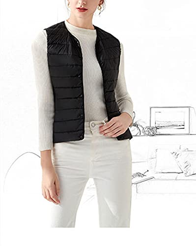 KHJH Doudoune sans Manche Gilet,Doudoune Femme Col Rond Court Léger Matelassé sans Manches Bouton Gilet Slim Manteau Rembourré Bodywarmer pour Automne Hiver Quotidien Marche en Plein Air,Noir,S