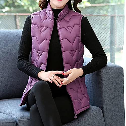 Manteaux Sans Manche Femme Chaud,Gilet Matelassé Femme Coupe-Vent Col Montant Sans Manches Veste Sans Manches Avec Poches Zip Violet Dames Chauffe-Corps Automne Hiver Cadeau Pour Camping En Plein A