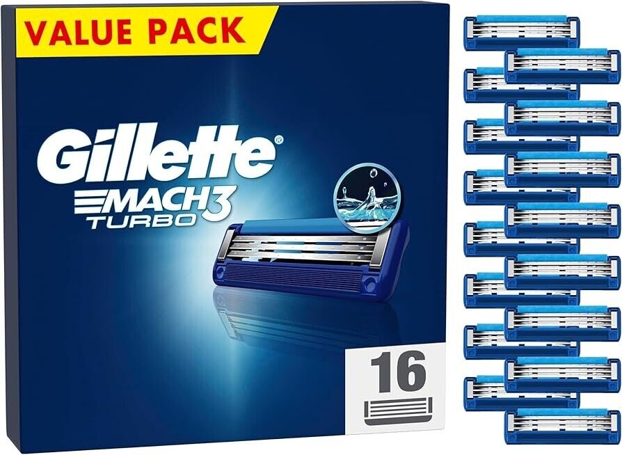 Value Pack 16 Lames GILLETTE MACH3 TURBO Recharges Rasoir Gilette Match 3 Mach *