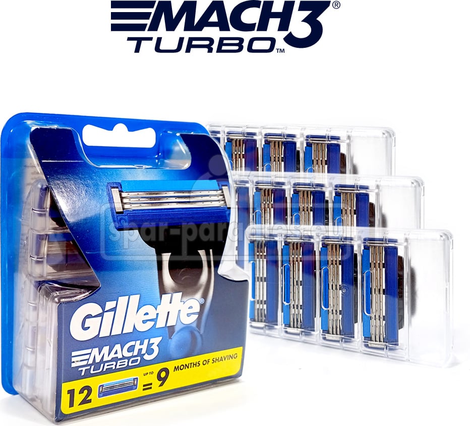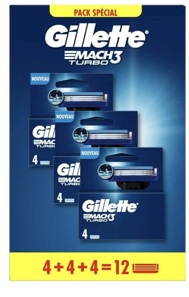 Lot 12 Lames GILLETTE MACH3 TURBO Recharge Rasoir Gilette Match 3 Match3 Mach 3*