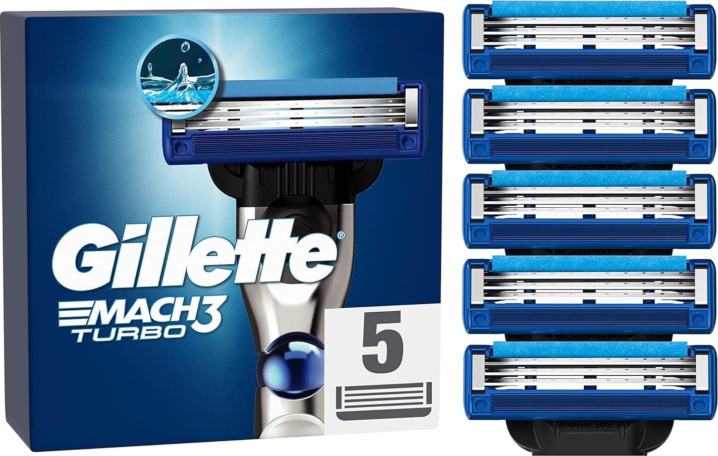 Pack 5 Lames GILLETTE MACH3 TURBO Recharges de Rasoir Gilette Mach 3 ORIGINAL