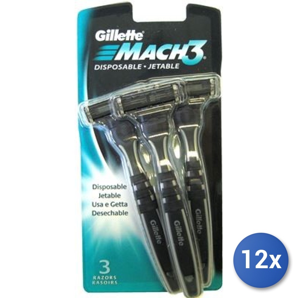 12x Pack Gillette Rasoirs Jetables Mach3 3 Pièces