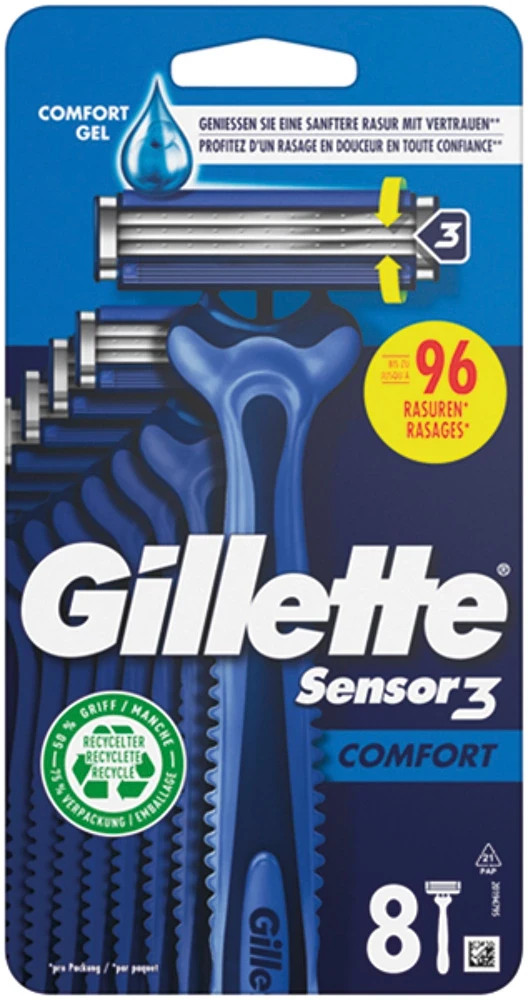 8 Rasoirs Jetables Gillette Sensor3 Comfort – Rasage Précis – 100% Original