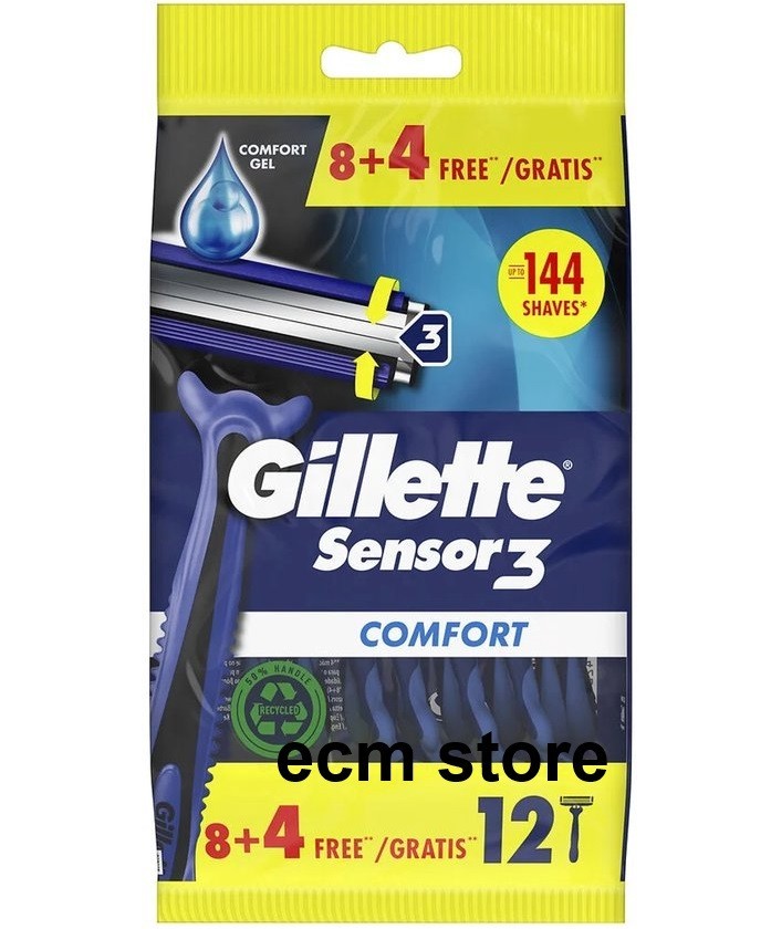 GILLETTE 12 Rasoir Jetables Sensor 3 Comfort Pour Homme /EBWC