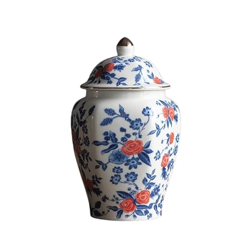 Vase en céramique Rose Multicolore en Forme de Pot à Gingembre pour la décoration intérieure, Vase en Porcelaine avec Couvercle, Centre de Table en Forme de Pot de Temple (Grand modèle Bleu)