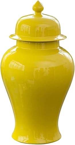 Vase en céramique Rose Multicolore en Forme de Pot à Gingembre pour la décoration intérieure, Vase en Porcelaine avec Couvercle, Centre de Table Style Temple (Jaune Moyen)