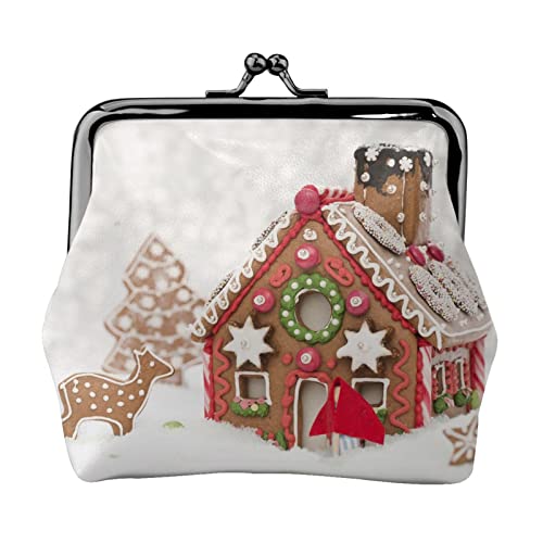 Gingerbread House Imprimer Petit Porte-Monnaie Kiss-Lock Pochette en Cuir Changer Portefeuille Cadeaux pour Hommes Femmes