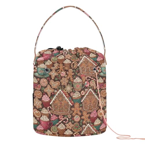 GuoChe Gingerbread House & Treats Sac de fil à crochet avec trous pour aiguilles à tricoter et accessoires de crochet Motif Noël