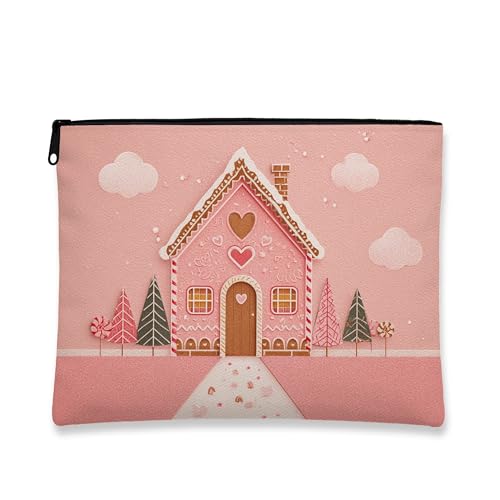Trousse de Maquillage Fantaisie, Trousse de Voyage cosmétique Peach House Gingerbread pour Femmes, Petite Pochette zippée en Toile, Organisateur de Produits de Toilette pour Les fêtes, 18 x 23 cm