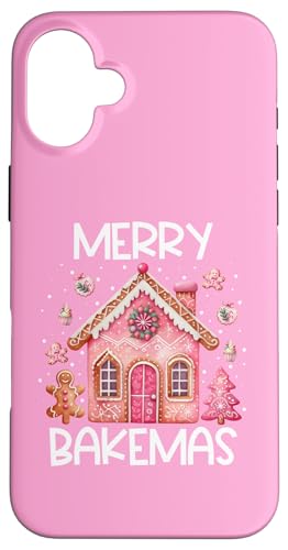 Coque pour iPhone 16 Plus Pâtisserie de Noël rose Merry Bakemas Gingerbread House
