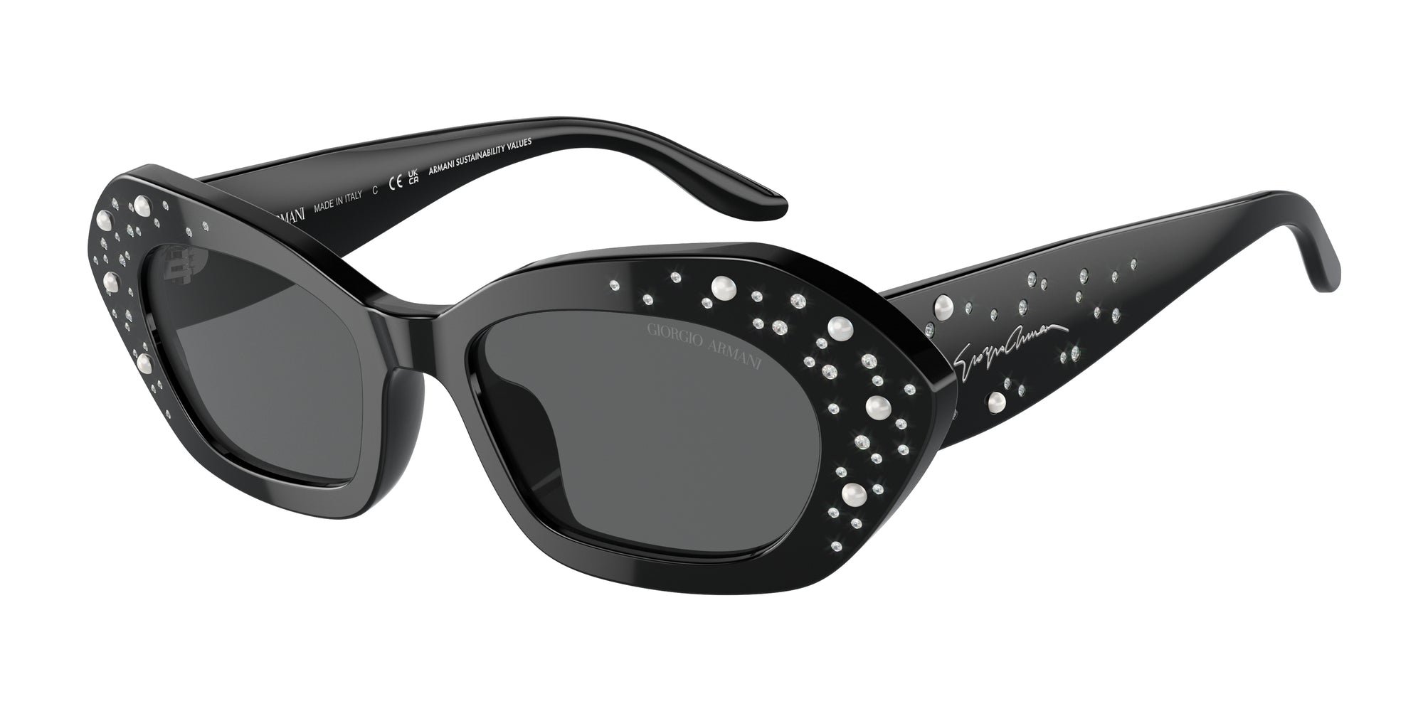 Giorgio Armani Femme Giorgio Armani AR8213BU 5001B1 Lunettes de soleil Acétate Noir Gris Cat Eye Normale