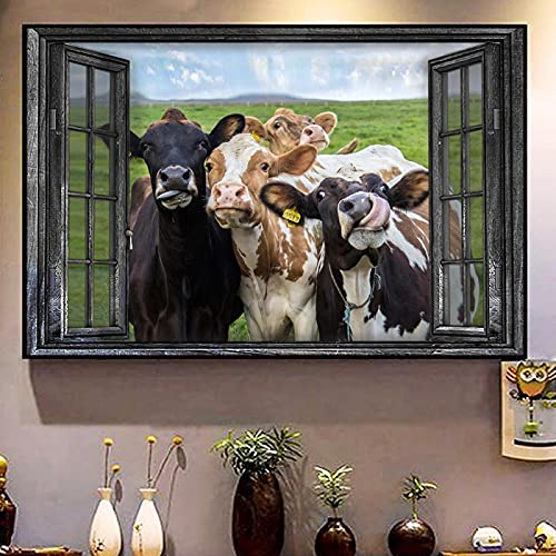 Toile Murale IntéRessante Vaches FenêTre Horizontale Affiche Vintage Ferme Vache Mur Art Photos Salon Enfant Chambre DéCor à La Maison 50x90 Cm Sans Cadre
