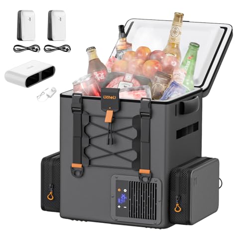 Litheli FrozenPack Glacière à compresseur 20 l, 12 V/240 V, pour camping, voyage, camping-car, refroidissement rapide de 15 minutes, avec 2 batteries de 4,0 Ah et chargeur (3 paquets)