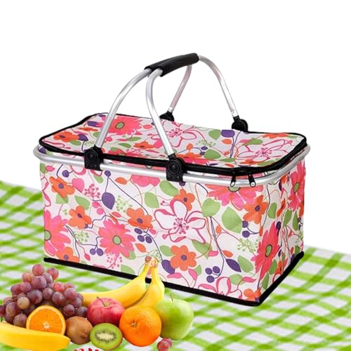 Panier Glaciere Isotherme Pliable, Grand Panier De Pique-Nique Imperméable avec Poignées Robustes 30 L, pour Bureau Camping Voyage