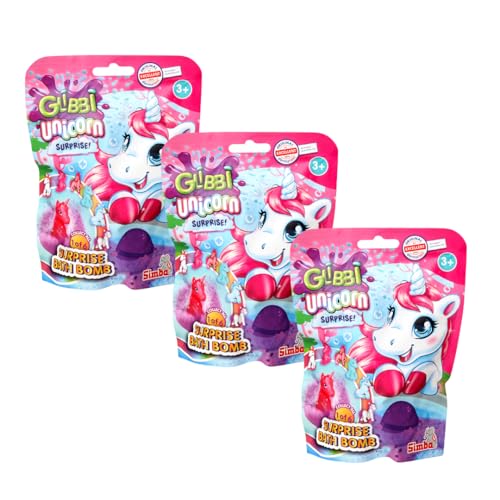 Glibbi Unicorn Surprise Lot de 3 bombes de bain assorties au hasard Jouet de bain à partir de 3 ans