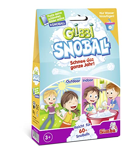 Simba 105953074 Glibbi Snoball, Bataille de Boules de Neige Toute l'année, Poudre transforme l'eau en Neige, 4 x 20 g, 60 balles, pâte Gel, Snowball, Gluant, à partir de 3 Ans, Taille Moyenne