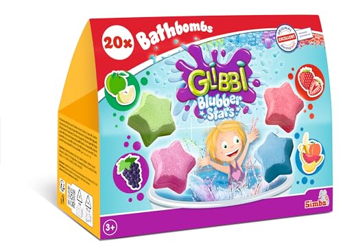 Simba Glibbi Blubber Stars 105953577 Lot de 20 bombes de bain pour faire bouillir l'eau, 4 parfums et couleurs, emballage durable, jouet de bain, à partir de 3 ans
