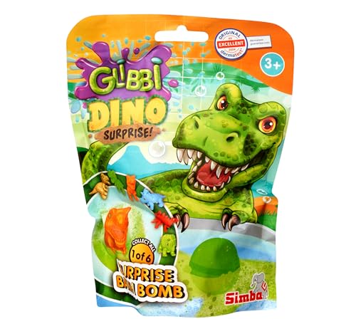 Glibbi Dino Surprise Bombe de Bain en 1 des 3 Couleurs (Bleu, Vert, Orange) avec Surprise, 1 Figurine sur 6, 100 g, Plaisir du Bain à partir de 3 Ans