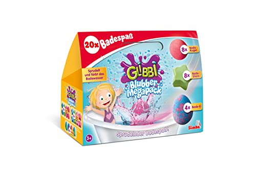 Simba Glibbi Blubber 105953611 Lot de 20 bombes de bain colorées, jouet de bain, additif de bain, pétillant et colorant l'eau, différents parfums, à partir de 3 ans