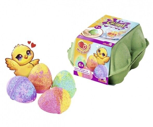 Simba Glibbi Blubber Œuf - Quatre bombes de bain amusantes en forme d'œuf colorent l'eau et la font bouillonner - À partir de 3 ans