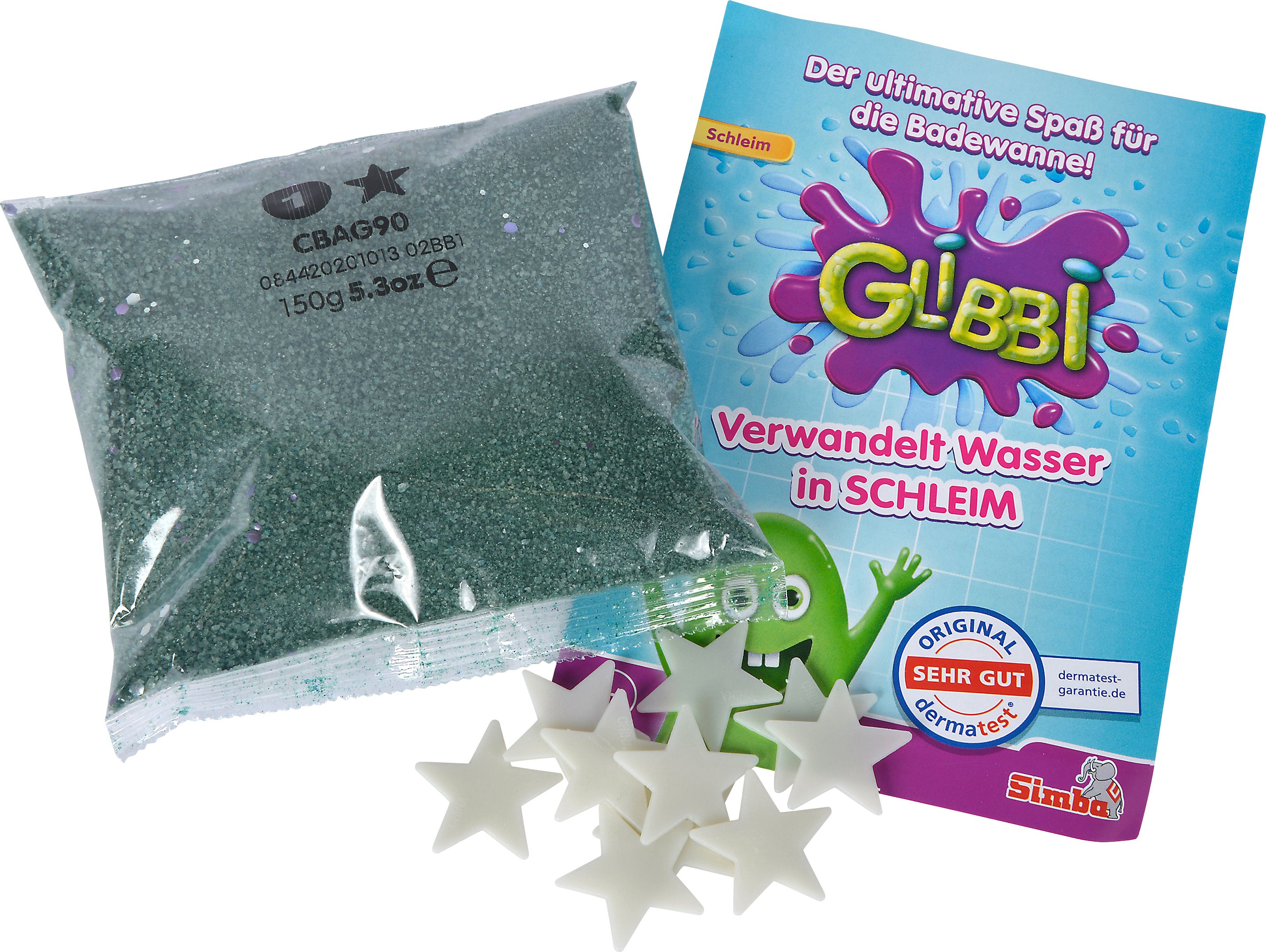 Simba Glibbi Galaxy 105953492 – Jouet de Bain Glibbi Galaxy, transformant l'eau en Slime Galactique, 150 g, avec 10 étoiles Brillantes, Plaisir de Bain, additif de Bain, à partir de 3 Ans