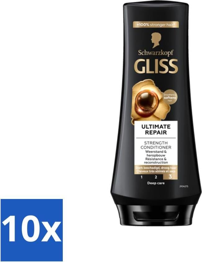 Gliss - Hair Repair - Après-shampooing pour la régénération ultime des cheveux abîmés - 200 ml - Pack avantage - 10 pièces