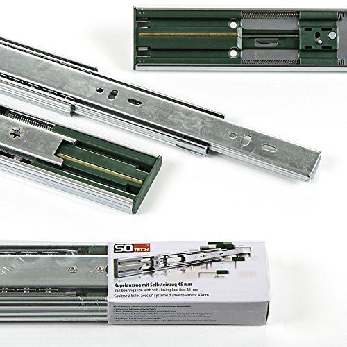 1 paire (2 pièces) SO-TECH® Glissière de Tiroir à Extension complète Fermeture automatique Silencieuse Hauteur 45/Longueur 600 mm Rail de Guidage Rail telescopique