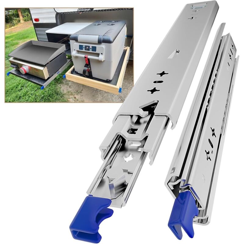 Glissiere Pour Tiroir Charge Lourde 450 mm Avec Serrure Charge max 120 kg Pour Camping Car & Van Latéral Coulisse de Tiroir Sortie Totale Rail