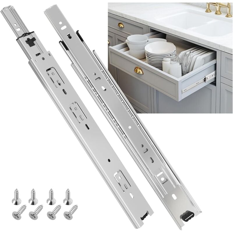 Ineasicer Glissiere pour Tiroir Avec Amortisseur Coulisse Tiroir 45kg Capacité de Charge Avec Roulement à Billes 450 mm Extension Complète, montage