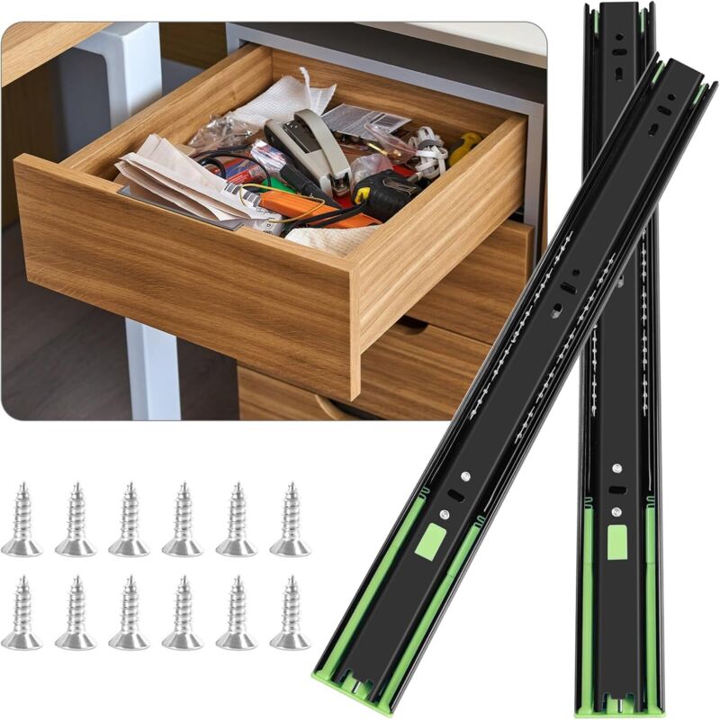 Glissiere pour tiroir 400 mm Glissière de tiroir latéral rail coulissant coulisse tiroir sortie totale à bille pour placard Noir 1 Paire(2 pièces)