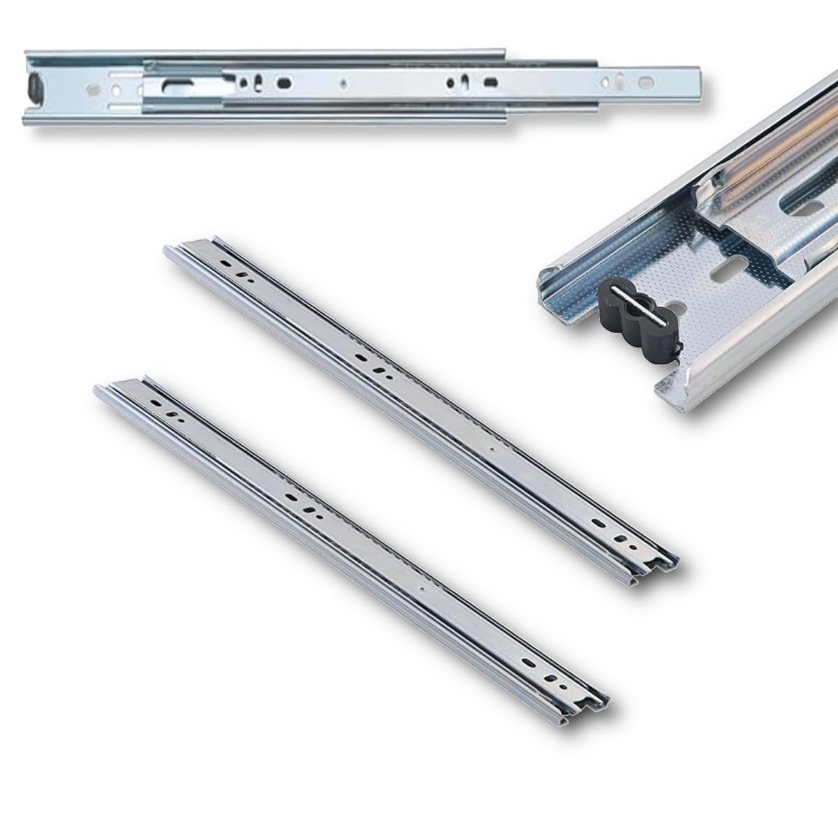 GTV - Ensemble de Glissières pour Tiroirs, Extraction Totale 53.9x450 mm, Acier Galvanisé 2 mm, Glissiere pour Tiroir Télescopique, Rail Tiroir Coulissant, Supportant jusqu'à 100 kg - 2 Pièces
