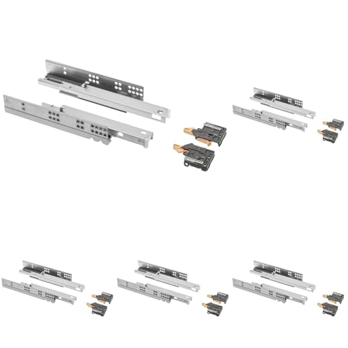 GTV - Glissières pour Tiroirs de Montage Inférieur avec Système de Fermeture Douce et Auto-Fermeture, Glissiere Tiroir Modern Slide, Extension Complète 450 mm, Supporte jusqu'à 35 kg - 2 Paires