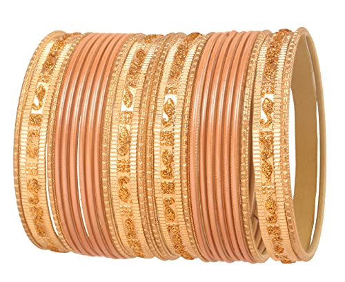 Touchstone Indian Bollywood "Colorful 2 Dozen Bangle Collection" Golden Glitters Textured Peach Designer Jewelry Special Bangle Bracelets Set Of 24 In Gold Tone For Women.