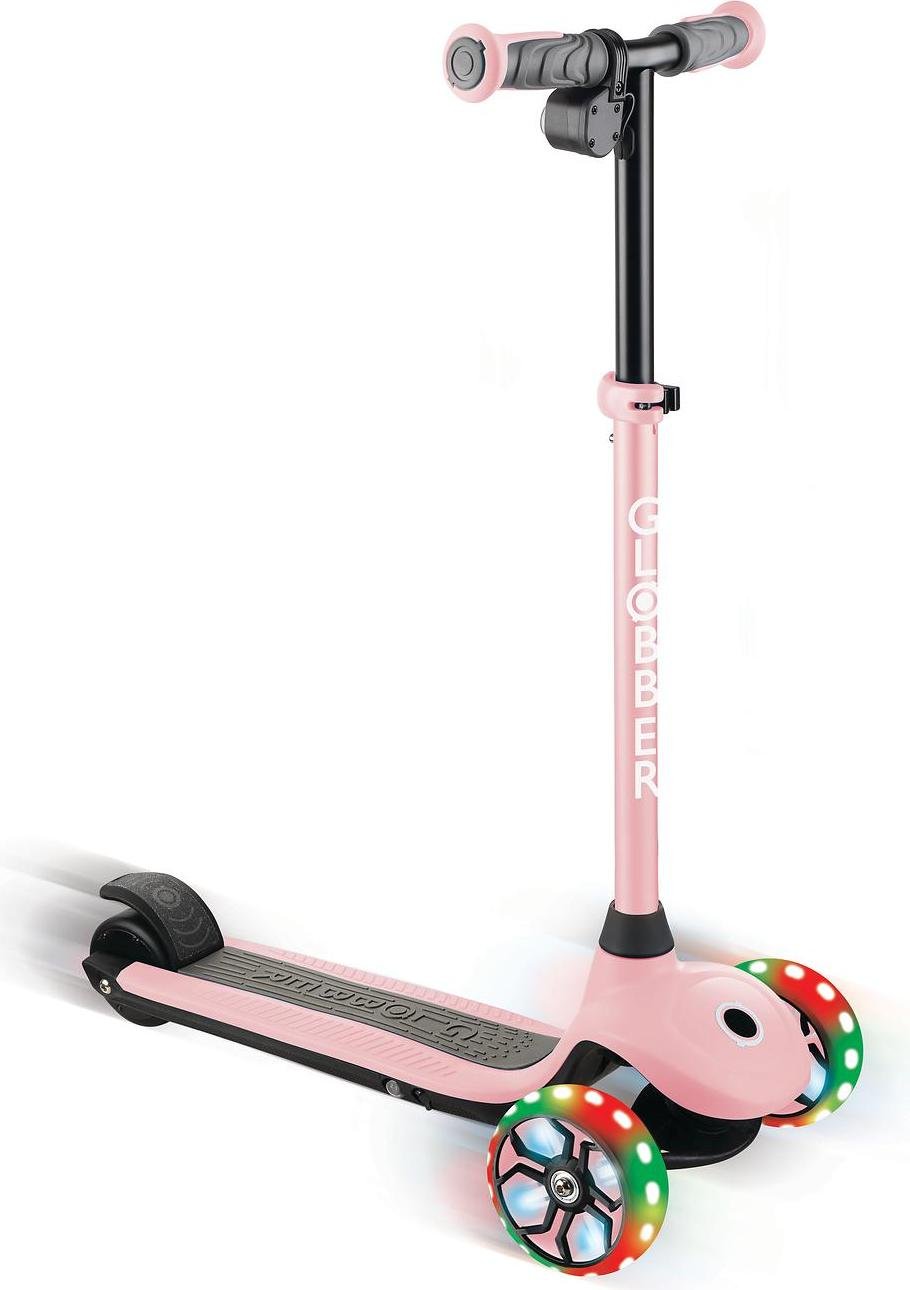 GLOBBER ONE K E-MOTION 4 PLUS - trottinette électrique, batterie au lithium, moteur 80 W, 125/90 mm, 3 roues, roues LED, rose pastel