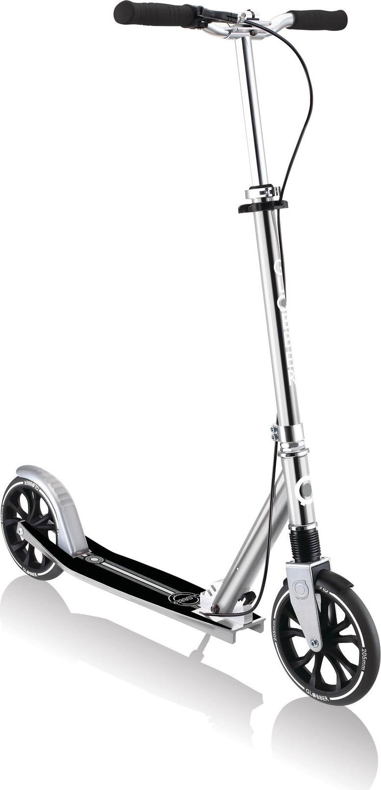 GLOBBER NL 205 Deluxe - trottinette, 205 mm, ABEC 9, frein à main, hauteur réglable, suspension avant, mécanisme de pliage, argent