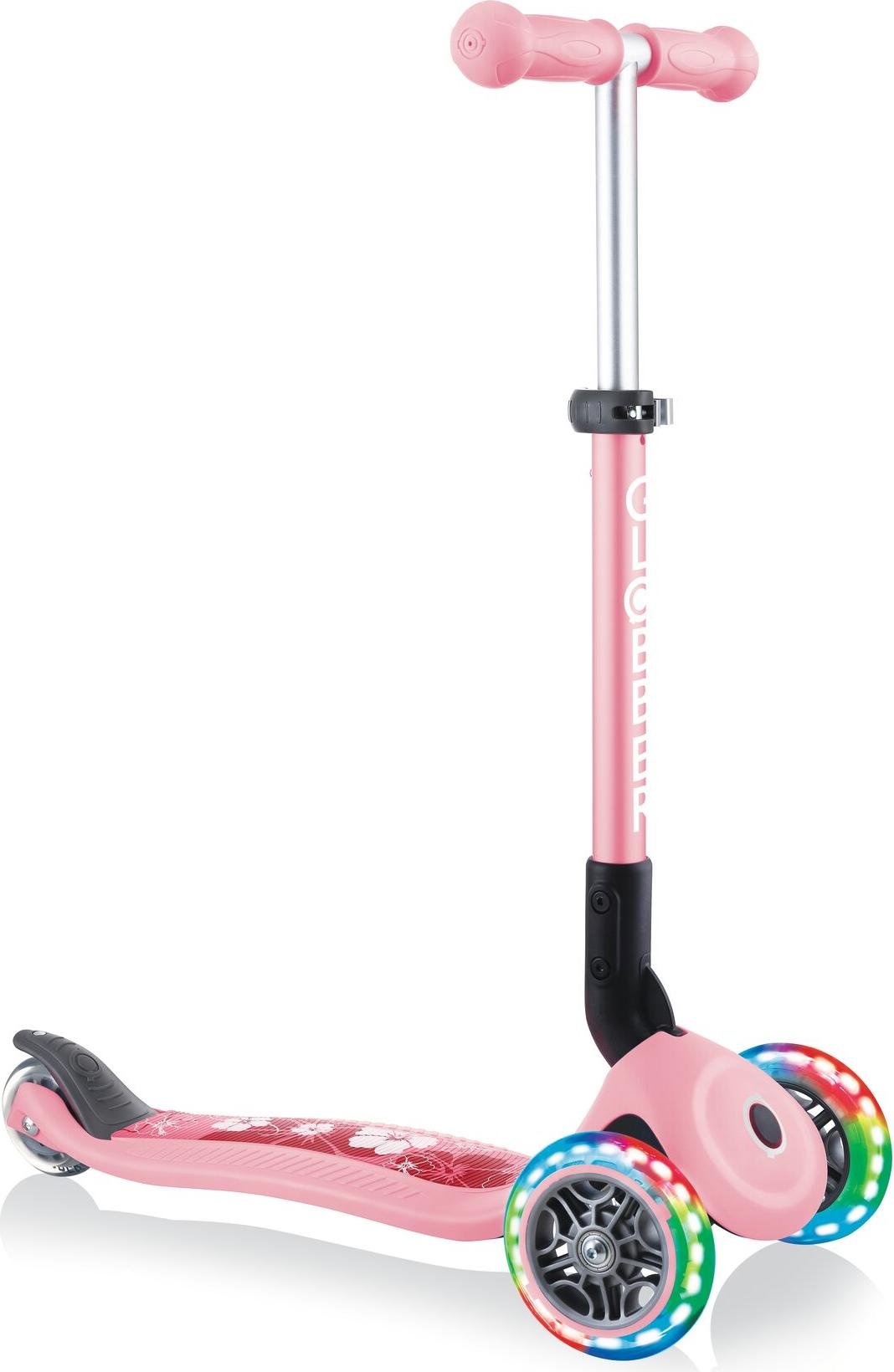 GLOBBER JUNIOR FOLDABLE FANTASY LIGHTS - trottinette, 120/80 mm, ABEC 5, 3 roues, roues lumineuses LED, rose pastel-Flowers