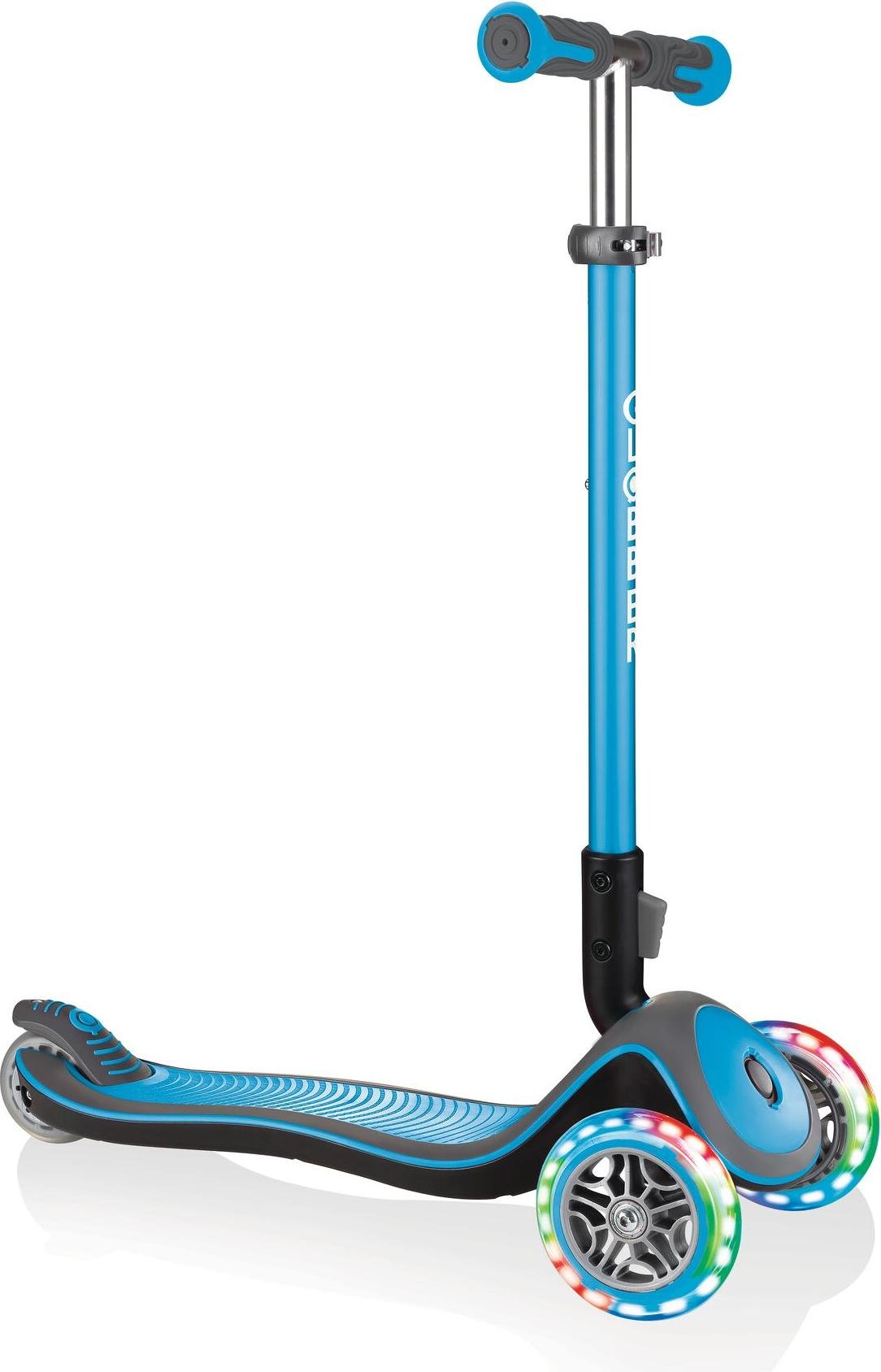 GLOBBER ELITE DELUXE LIGHTS - trottinette enfants, 120/80 mm, ABEC 5, 3 roues, hauteur réglable, roues LED, bleu clair