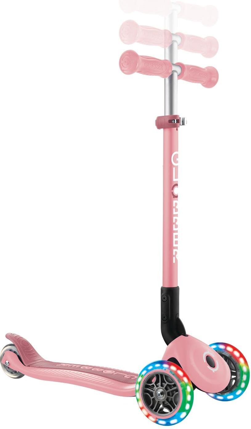 GLOBBER PRIMO FOLDABLE LIGHTS - trottinette enfants, 120/80mm, ABEC 9, 3 roues, hauteur réglable, roues LED, rose pastel