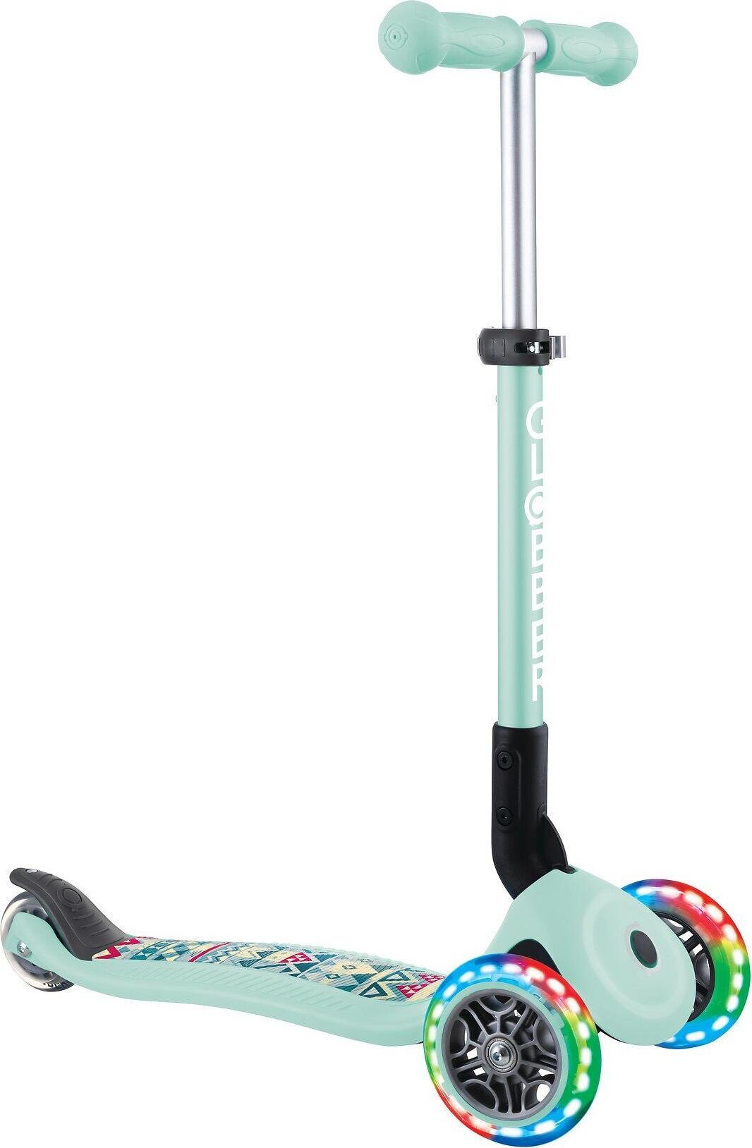 GLOBBER JUNIOR FOLDABLE FANTASY LIGHTS - trottinette, 120/80 mm, ABEC 5, 3 roues, roues lumineuses LED, menthe-tribal