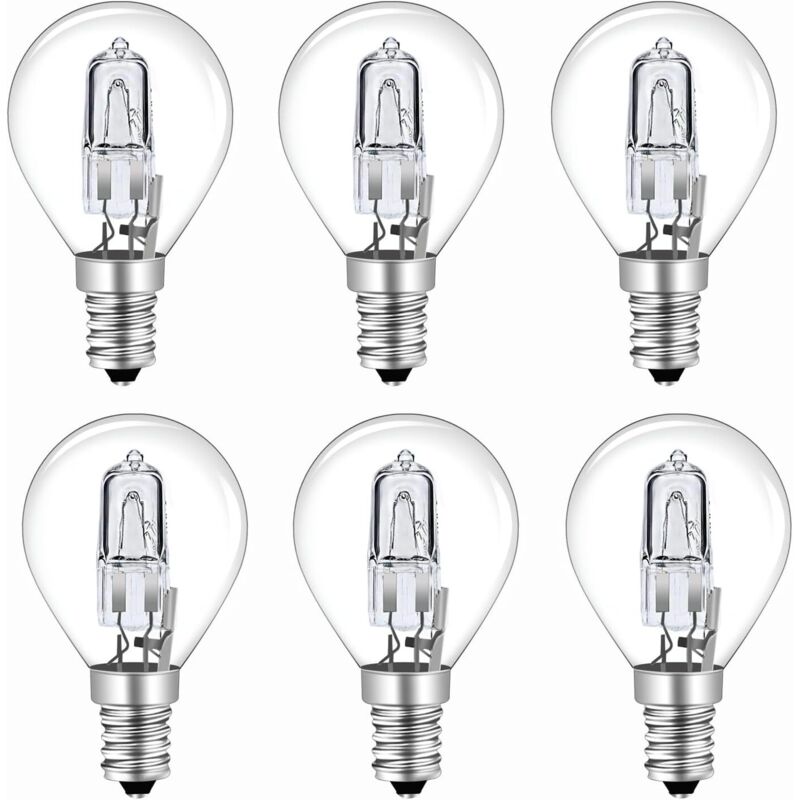 Lot de 6 Ampoule Halogène G45 E14 28W, Dimmable Blanc Chaud 2700K Transparent Ampoule Globe G45 Halogène E14 AC 230V 370LM pour Lustre, Applique,
