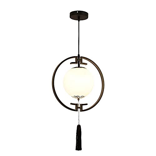 Globe chinois luminaires suspendus en verre anneau de fer noir gland lustre à tête unique pour salle à manger salon chambre plafonnier Made in China