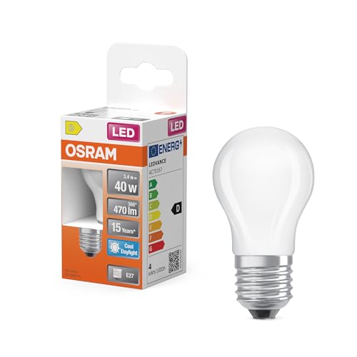 OSRAM Lampe LED Star Globe P40 Filament, 6 500 K blanc froid lumière du jour, 3,4 W, E14, dépolie, 470 lm, pour luminaires de table et suspendus, 15 000 h