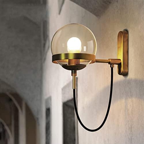HWSY Applique Murale Industrielle Rustique Support en Métal Et Globe Rond Abat-Jour en Verre Clair E27 Applique Murale en Laiton Applique Murale Luminaire pour Salle De Bains Salon Chambre Restaurant