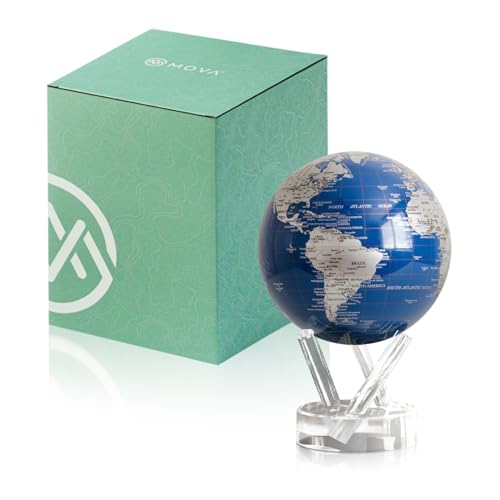 Globe MOVA – Terre Bleu et Argent 11,5 cm | Globe Rotatif avec Lumière pour Bureau, Étude ou Cadeau | Sans Piles ni Câbles