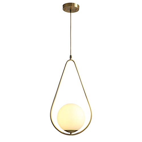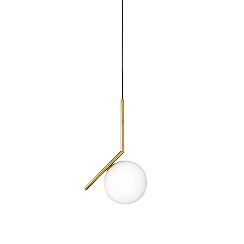 Lustre doré Moderne du Milieu du siècle Grand Globe Blanc à Suspension Luminaire Vintage en Laiton plafonnier encastré éclairage Suspendu pour îlot de Cuisine Boule de Verre de Lait Lampe Suspendue (