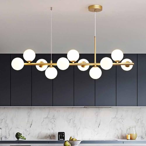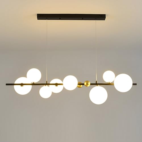 Pilanp Lustre linéaire créatif Nordique G9 LED Suspension intérieure Globe Lustre en Verre pour Salle à Manger Bureau Bar Cuisine îlot 8 lumières 43,3 Pouces Suspension