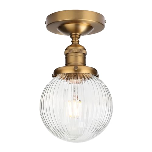 Pathson Plafonnier Industriel Vintage Luminaire E27 Rétro Lustre Suspension Abat-jour en Verre Globe Ø15CM Éclairage Plafond Pour Salon Cuisine Chambre (Antique)